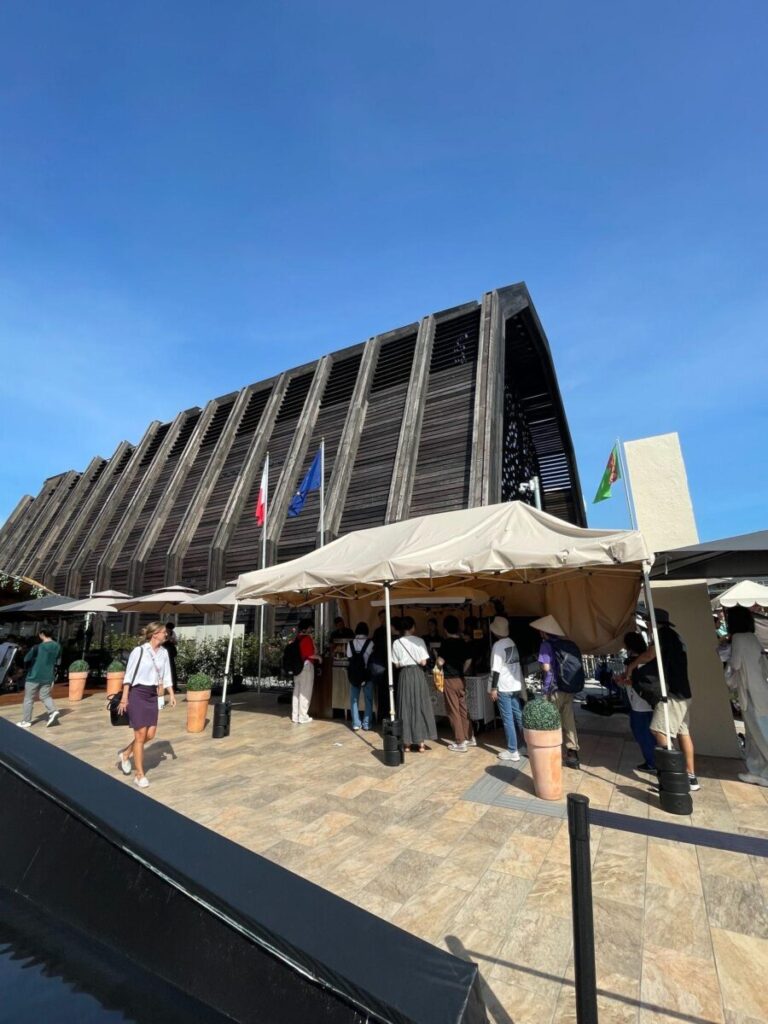 「Catch the Wave, Catch the Opportunity」をテーマに、地中海のブルーが印象的なパビリオンが登場しました。